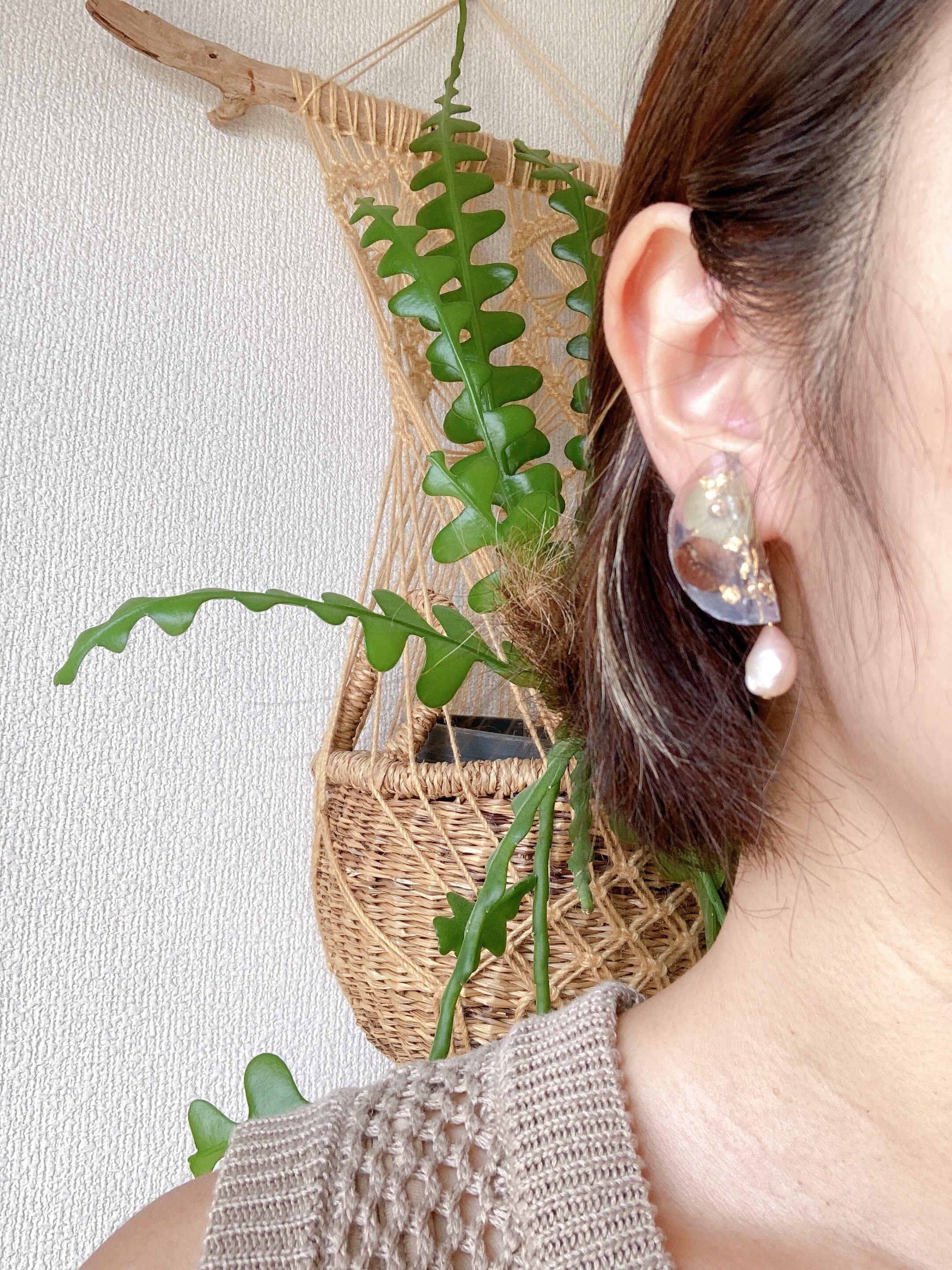 ピアス・イヤリング共に、淡水パール・オレンジムーンストーンの付け替え可能です。