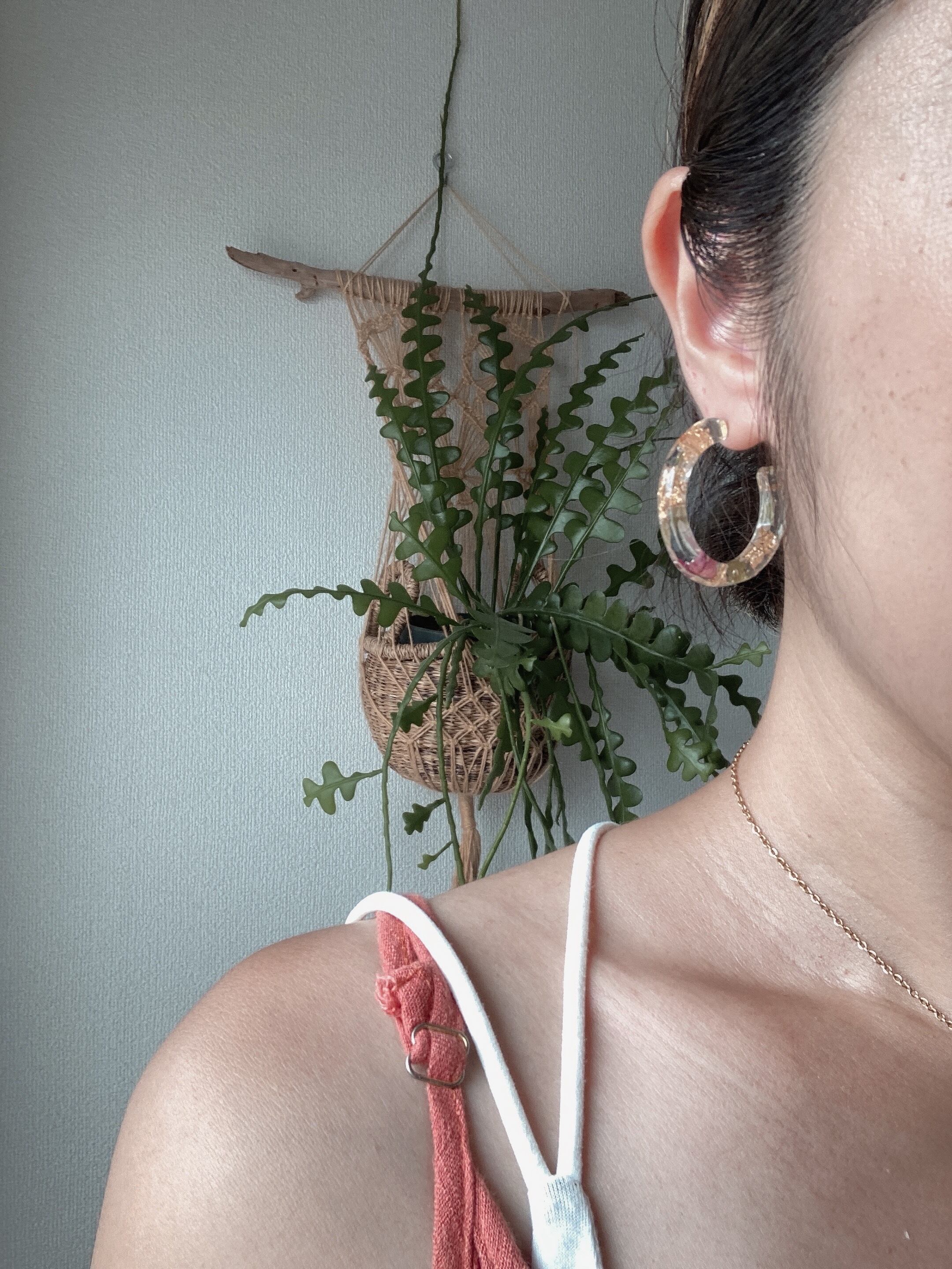 レジンで作ったフープピアスです。 ピアスポストはサージカルステンレスで出来ています。 金アレ対応商品です☺️ 直径約3.5cmです。